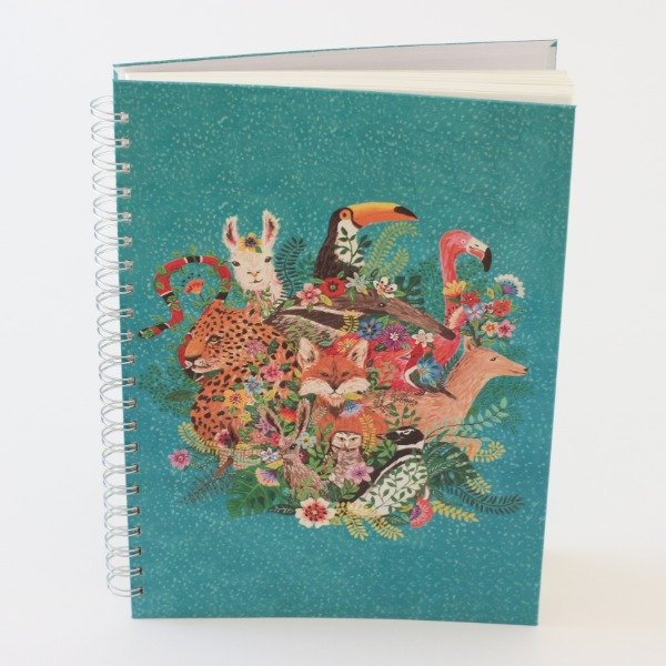 Cuaderno A4, doble anillado metálico, 100 hojas rayadas, 80grs., con tapas duras laminadas con una ilustración de nuestro Calendario/Agenda [3 modelos disponibles. Día de muertos, Día del animal y Mujer en árbol con yaguareté]