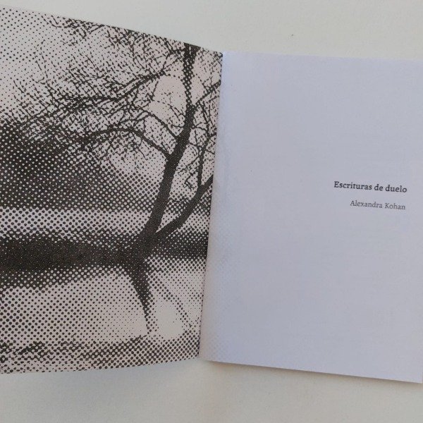 Escrituras de duelo es un ensayo publicado originalmente en elDiarioAR por Alexandra Kohan, con imágenes originales de Lucien Legras, intervenidas. Plaqueta de 20 pp. 17,5 x 12,5 cm. Impresa en risografía.